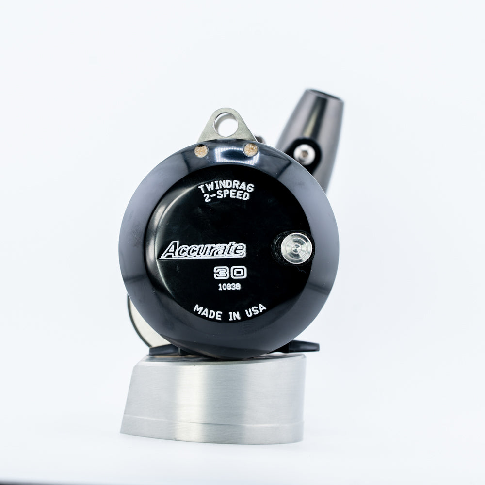 ATD 30 in Black/Gunmetal Anodizing. This is a 2-speed, right-handed reel. Reel specs can be found here.