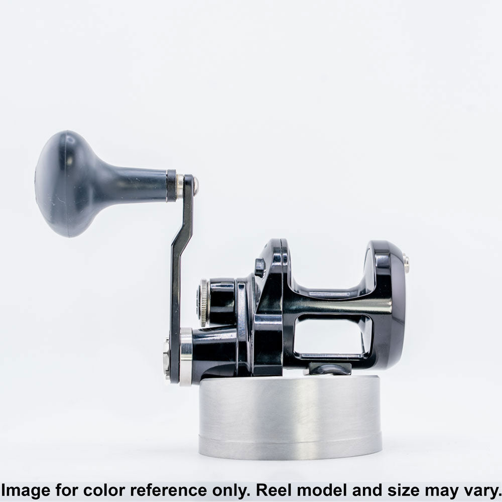 Custom Color Valiant 2 300 in Black Custom Anodizing. This is a single-speed, right-handed reel that features a clicker. Reel specs can be found here.