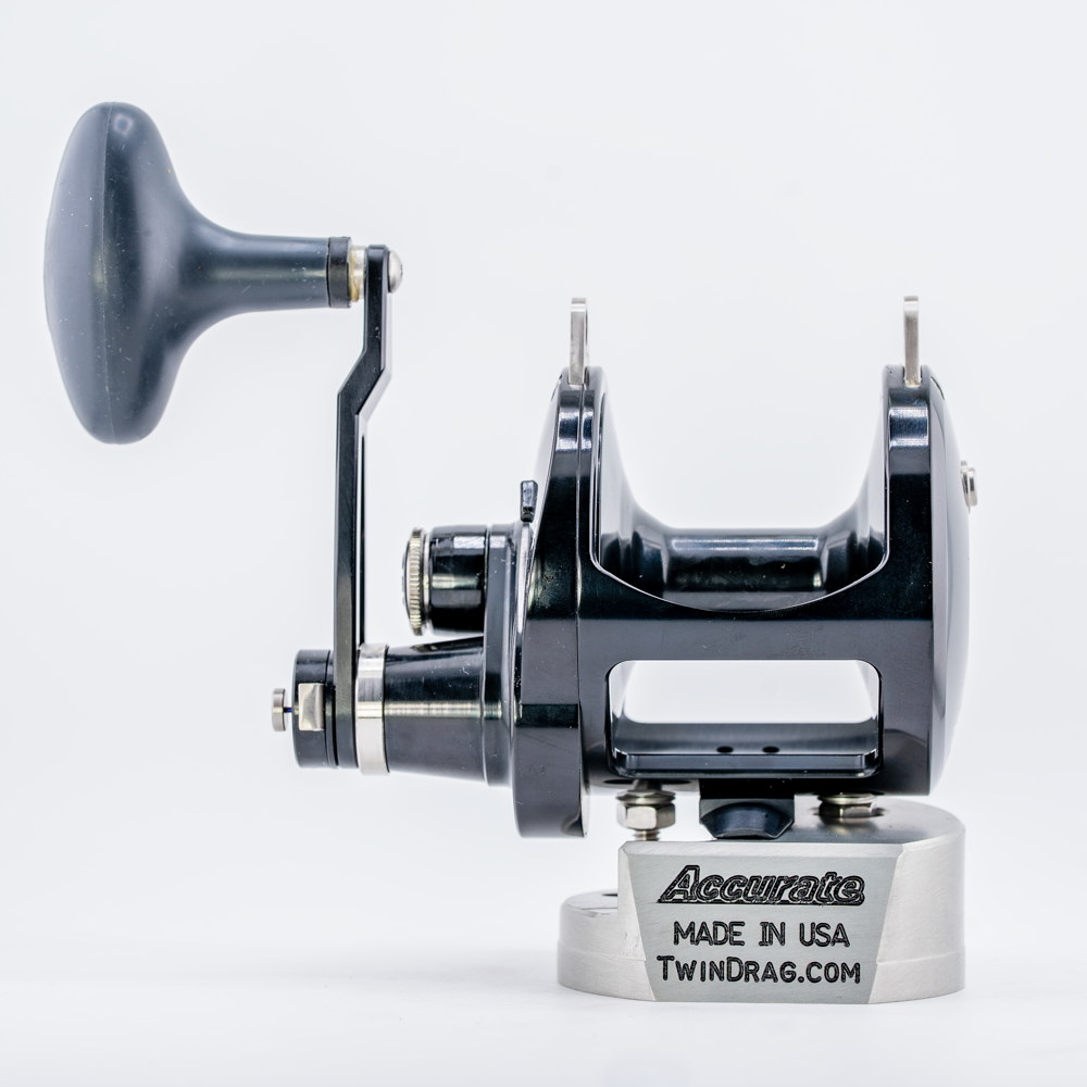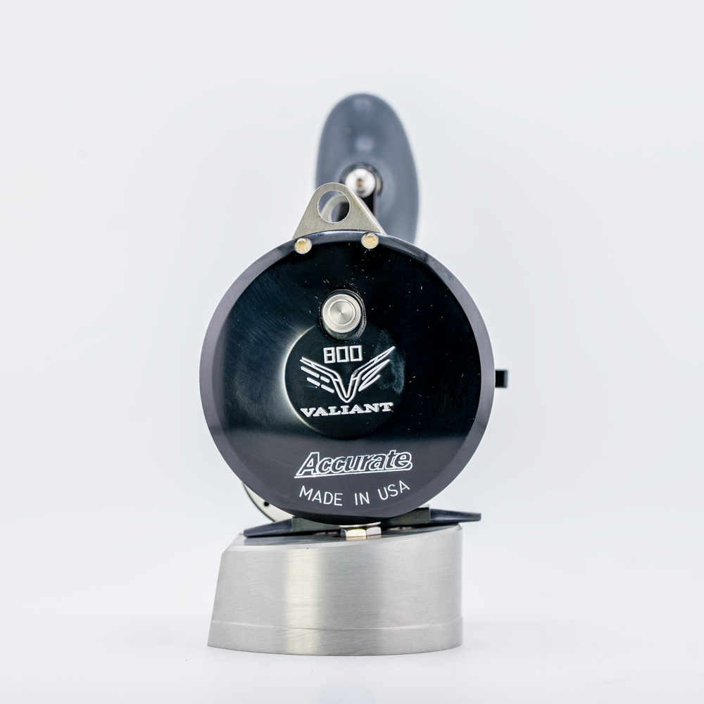 Custom Color Valiant 2 800 in Black Custom Anodizing. This is a 2-speed, right-handed reel. Reel specs can be found here.
