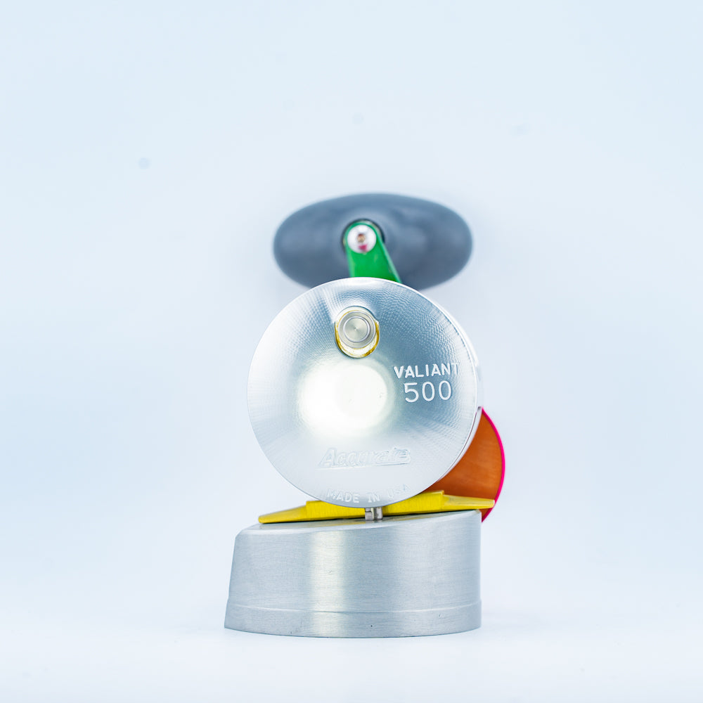 Custom Color Valiant 500 in Custom Anodizing. This is a 2-speed, left-handed reel.