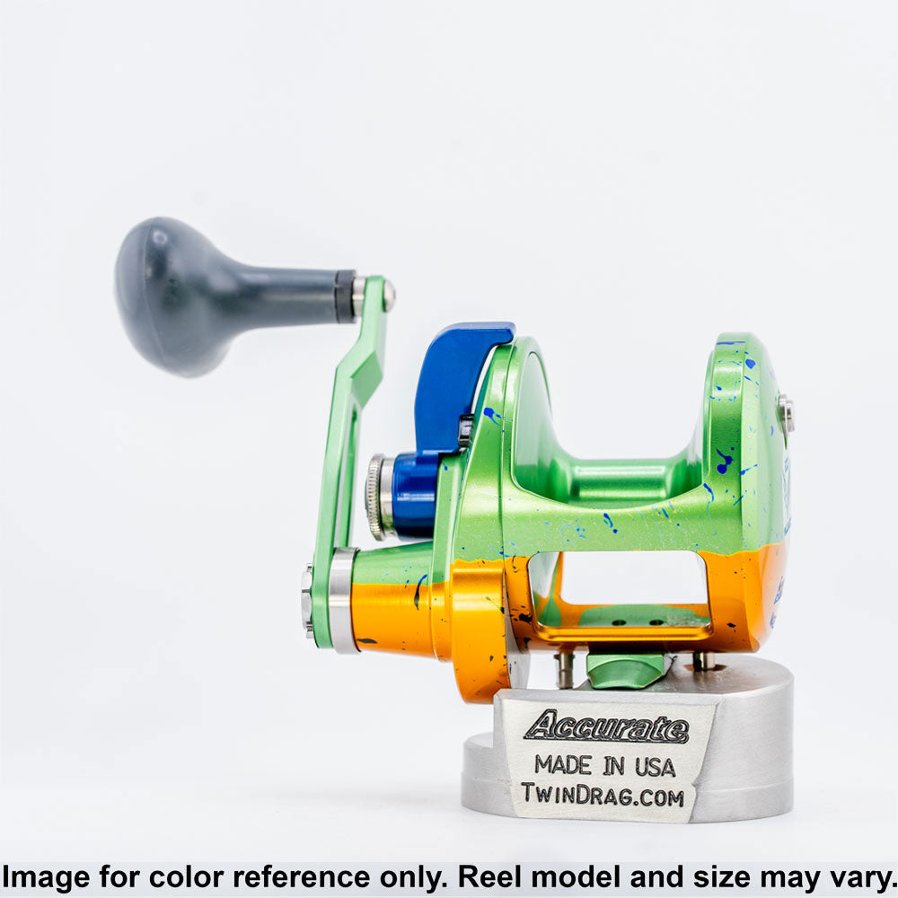 Custom Color Valiant 2 500N Plus in Mahi Custom Anodizing. This is a single-speed, right-handed reel. Reel specs can be found here.