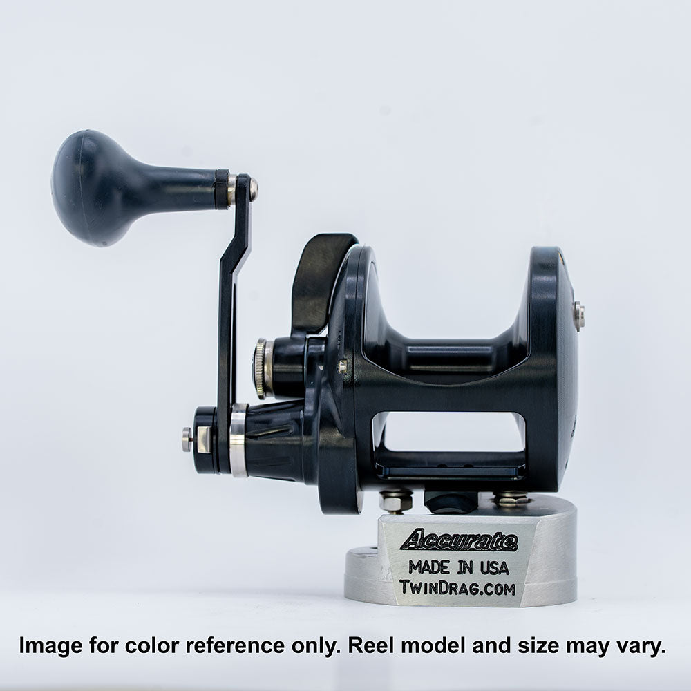 Custom Color Valiant 400 in Matte Black Anodizing. This is a 2-speed, right-handed reel.