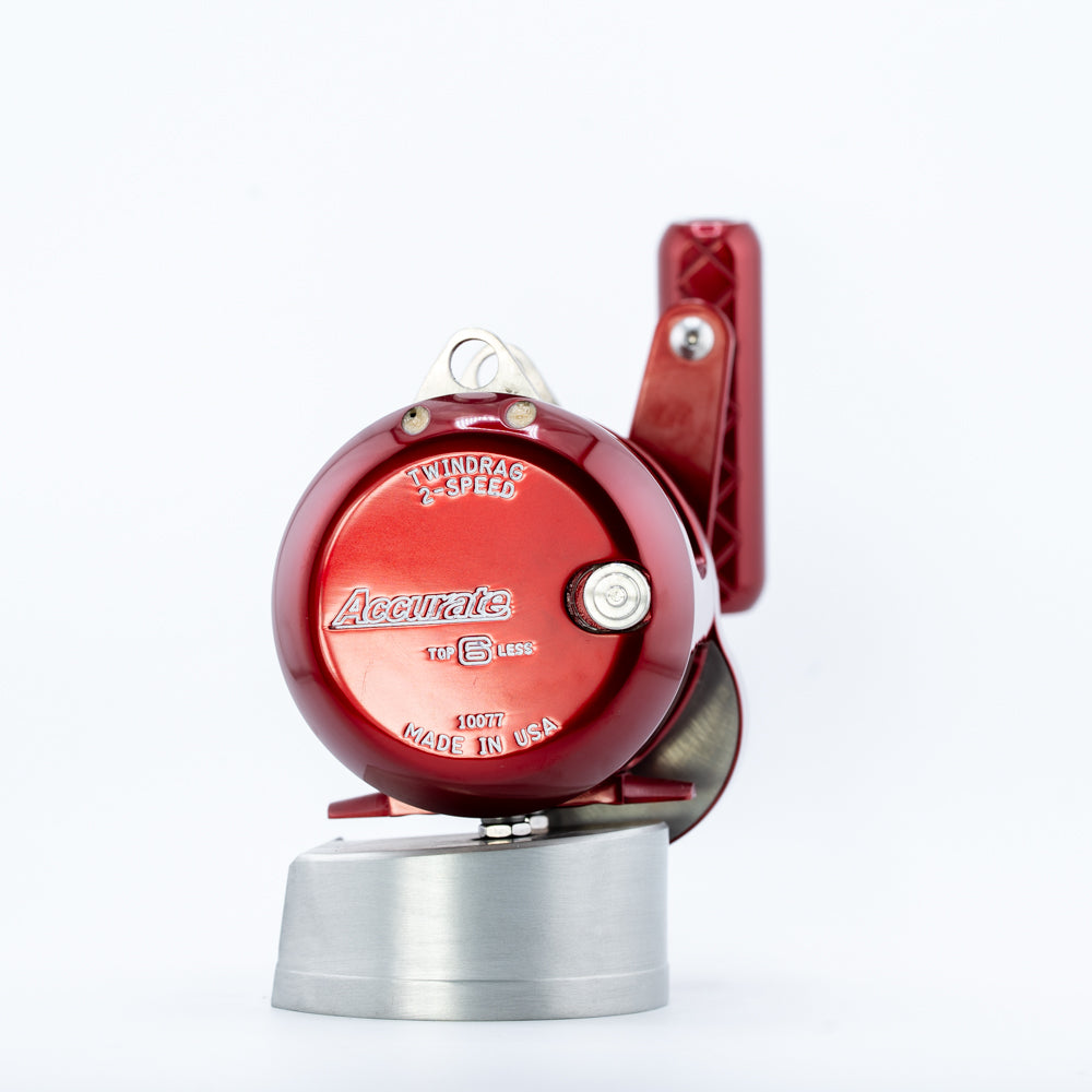 Custom Color ATD 50T in Red Anodizing. This is a 2-speed, right-handed reel. Reel specs can be found here.
