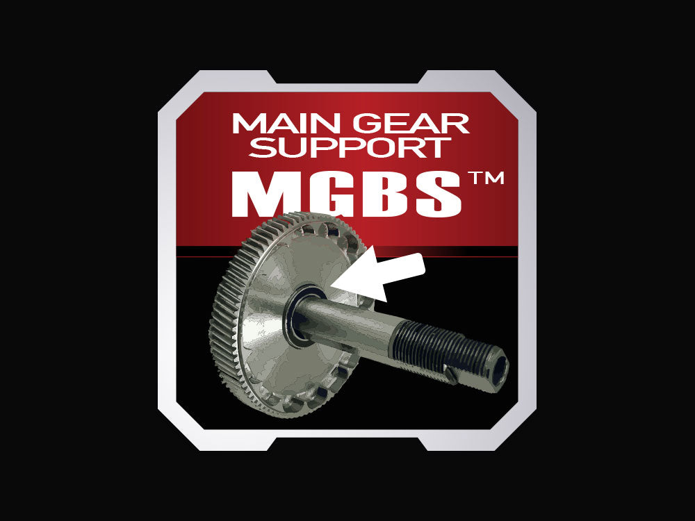The Main Gear Bearing Support system utilizes a bearing to remove friction between gear and shaft for an overall smoother, stronger operation.