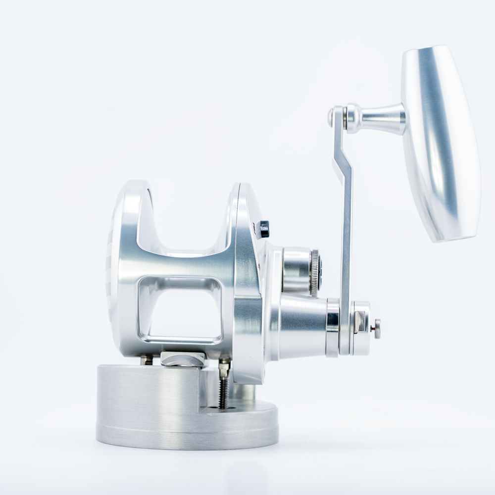 Custom Color Valiant 2 600N SPJ in USA Flag Custom Engraving. This is a 2-speed, left-handed reel. Reel specs can be found here.